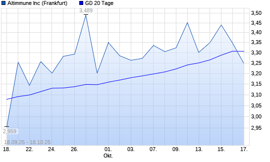 Mit dem Rücksetzer auf 3,25 EUR hat die Altimmune-Aktie am 17.10.2025 die 20-Tage-Linie nach unten gekreuzt.Die Altimmune-Aktie befindet sich seit dem 26.06.2025 im langfristigen Abwärtstrend ...weiterlesen