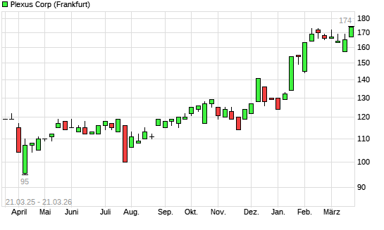 Mit dem Anstieg auf 174,00 EUR hat die Plexus-Aktie (ISIN US7291321005) am 20.03.2026 ein neues All-Time-High erreicht und damit den Kurs vom 03.02.2026 eingestellt.Die ...weiterlesen