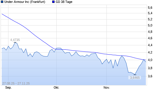 Mit dem Anstieg auf 4,01 EUR hat die Under Armour-Aktie am 26.11.2025 die 38-Tage-Linie nach oben gekreuzt.Die Under Armour-Aktie befindet sich seit dem 06.02.2025 im langfristigen Abwärtstrend ...weiterlesen