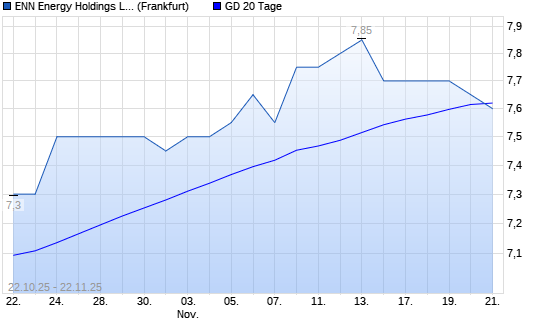 Mit dem Rücksetzer auf 7,60 EUR hat die ENN ENERGY HOLDINGS-Aktie am 21.11.2025 die 20-Tage-Linie nach unten gekreuzt.Die ENN ENERGY HOLDINGS-Aktie befindet sich seit dem 19.09.2025 im ...weiterlesen