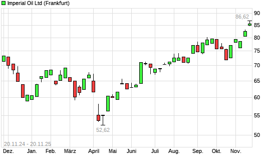 Mit dem Anstieg auf 86,62 EUR hat die Imperial Oil-Aktie (ISIN CA4530384086) am 19.11.2025 ein neues All-Time-High erreicht und damit den Kurs vom 17.11.2025 eingestellt.Die Imperial Oil-Aktie ...weiterlesen