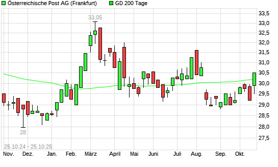 Mit dem Anstieg auf 30,50 EUR hat die Österreichische Post-Aktie am 24.10.2025 die 200-Tage-Linie nach oben gekreuzt.Die Österreichische Post-Aktie befand sich seit dem 11.08.2025 im langfristigen ...weiterlesen