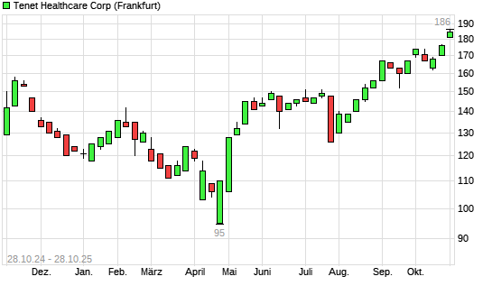 Mit dem Anstieg auf 181,00 EUR hat die Tenet Healthcare-Aktie (ISIN US88033G4073) am 27.10.2025 ein neues 10-Jahres-Hoch erreicht und damit den Kurs vom 22.10.2025 eingestellt.Die ...weiterlesen