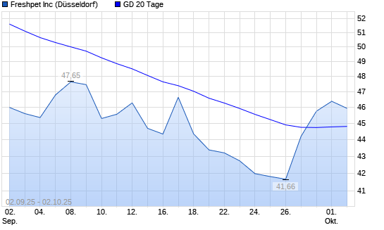 Mit dem Anstieg auf 46,40 EUR hat die Freshpet-Aktie am 01.10.2025 die 20-Tage-Linie nach oben gekreuzt.Die Freshpet-Aktie befindet sich seit dem 11.02.2025 im langfristigen Abwärtstrend und ...weiterlesen