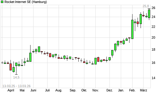 Mit dem Anstieg auf 25,80 EUR hat die Rocket Internet-Aktie (ISIN DE000A12UKK6) am 12.03.2026 ein neues 3-Jahres-Hoch erreicht und damit den Kurs vom 11.03.2026 eingestellt.Die ...weiterlesen