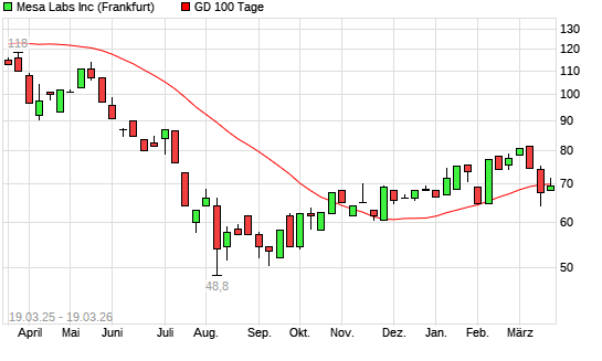 Mit dem Anstieg auf 71,50 EUR hat die Mesa Laboratories-Aktie am 18.03.2026 die 100-Tage-Linie nach oben gekreuzt.Die Mesa Laboratories-Aktie befindet sich seit dem 16.03.2026 ...weiterlesen