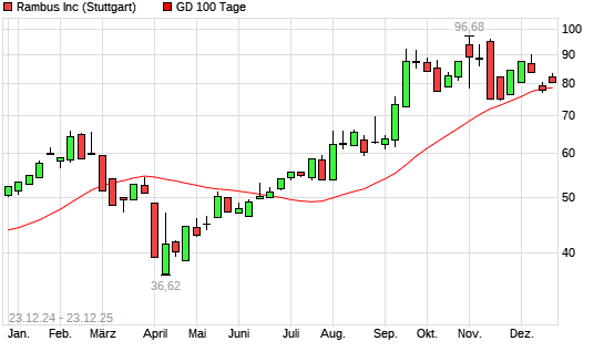 Mit dem Anstieg auf 82,16 EUR hat die Rambus-Aktie am 22.12.2025 die 100-Tage-Linie nach oben gekreuzt.Die Rambus-Aktie befindet sich seit dem 04.06.2025 im langfristigen Aufwärtstrend und hat ...weiterlesen