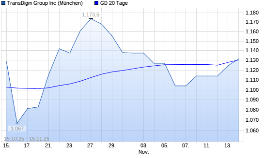 Mit dem Anstieg auf 1.132,50 EUR hat die TransDigm Group-Aktie am 14.11.2025 die 20-Tage-Linie nach oben gekreuzt.Die TransDigm Group-Aktie befindet sich seit dem 05.08.2025 im langfristigen ...weiterlesen