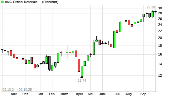 Mit dem Anstieg auf 28,76 EUR hat die AMG Advanced Metallurgical Group-Aktie (ISIN NL0000888691) am 01.10.2025 ein neues 12-Monats-Hoch erreicht und damit den Kurs vom 26.09.2025 eingestellt.Die ...weiterlesen