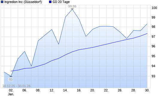 Mit dem Rücksetzer auf 96,12 EUR hat die Ingredion-Aktie am 29.01.2026 die 20-Tage-Linie nach unten gekreuzt.Die Ingredion-Aktie befindet sich seit dem 03.04.2025 im ...weiterlesen