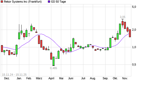 Mit dem Rücksetzer auf 1,50 EUR hat die Rekor Systems-Aktie am 14.11.2025 die 50-Tage-Linie nach unten gekreuzt.Die Rekor Systems-Aktie befindet sich seit dem 16.09.2025 im langfristigen ...weiterlesen