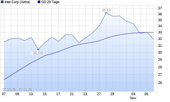 Mit dem Rücksetzer auf 32,40 EUR hat die Intel-Aktie am 06.11.2025 die 20-Tage-Linie nach unten gekreuzt.Die Intel-Aktie befindet sich seit dem 14.08.2025 im langfristigen Aufwärtstrend ...weiterlesen