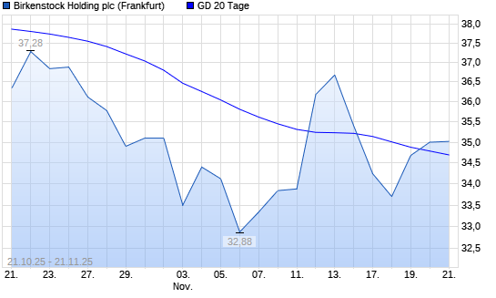 Mit dem Anstieg auf 35,00 EUR hat die Birkenstock Holding-Aktie am 20.11.2025 die 20-Tage-Linie nach oben gekreuzt.Die Birkenstock Holding-Aktie befindet sich seit dem 12.06.2025 im langfristigen ...weiterlesen