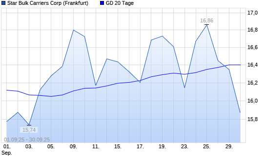 Mit dem Rücksetzer auf 16,35 EUR hat die Star Bulk Carriers-Aktie am 29.09.2025 die 20-Tage-Linie nach unten gekreuzt.Die Star Bulk Carriers-Aktie befindet sich seit dem 11.07.2025 im langfristigen ...weiterlesen