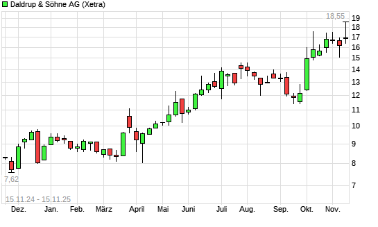 Mit dem Anstieg auf 18,25 EUR hat die Daldrup & Söhne-Aktie (ISIN DE0007830572) am 14.11.2025 ein neues 10-Jahres-Hoch erreicht und damit den Kurs vom 12.11.2025 eingestellt.Die Daldrup & Söhne-Aktie ...weiterlesen
