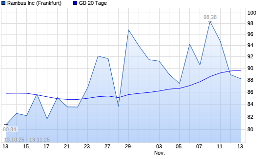 Mit dem Rücksetzer auf 88,88 EUR hat die Rambus-Aktie am 12.11.2025 die 20-Tage-Linie nach unten gekreuzt.Die Rambus-Aktie befindet sich seit dem 04.06.2025 im langfristigen Aufwärtstrend ...weiterlesen