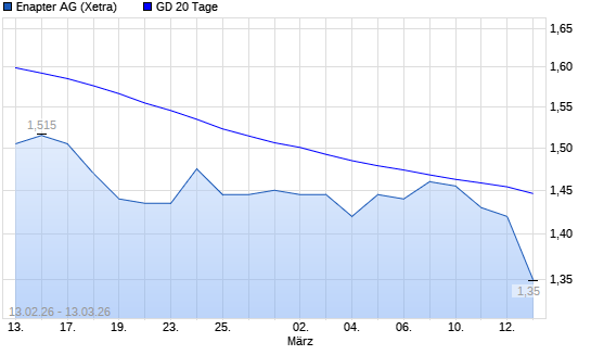 Mit dem Rücksetzer auf 1,46 EUR hat die Enapter (ex S&O Beteiligungen)-Aktie am 12.03.2026 die 20-Tage-Linie nach unten gekreuzt.Die Enapter (ex S&O Beteiligungen)-Aktie ...weiterlesen
