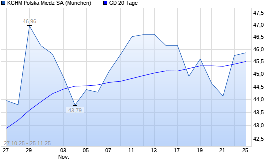 Mit dem Anstieg auf 46,11 EUR hat die KGHM Polska Miedz-Aktie am 24.11.2025 die 20-Tage-Linie nach oben gekreuzt.Die KGHM Polska Miedz-Aktie befindet sich seit dem 07.08.2025 im langfristigen ...weiterlesen