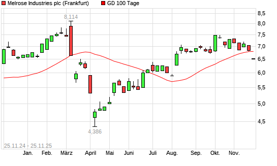 Mit dem Rücksetzer auf 6,53 EUR hat die Melrose Industries-Aktie am 24.11.2025 die 100-Tage-Linie nach unten gekreuzt.Die Melrose Industries-Aktie befindet sich seit dem 04.08.2025 im langfristigen ...weiterlesen