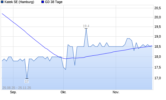 Mit dem Rücksetzer auf 18,50 EUR hat die KATEK SE O.N.-Aktie am 24.11.2025 die 38-Tage-Linie nach unten gekreuzt.Die KATEK SE O.N.-Aktie befindet sich seit dem 07.08.2025 im langfristigen ...weiterlesen