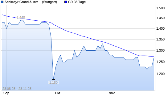 Mit dem Anstieg auf 1.280,00 EUR hat die Sedlmayr Grund und Immobilien-Aktie am 27.11.2025 die 38-Tage-Linie nach oben gekreuzt.Die Sedlmayr Grund und Immobilien-Aktie befindet sich seit dem ...weiterlesen
