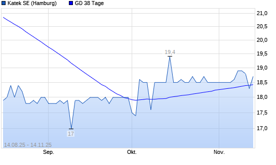 Mit dem Rücksetzer auf 18,30 EUR hat die KATEK SE O.N.-Aktie am 13.11.2025 die 38-Tage-Linie nach unten gekreuzt.Die KATEK SE O.N.-Aktie befindet sich seit dem 07.08.2025 im langfristigen ...weiterlesen