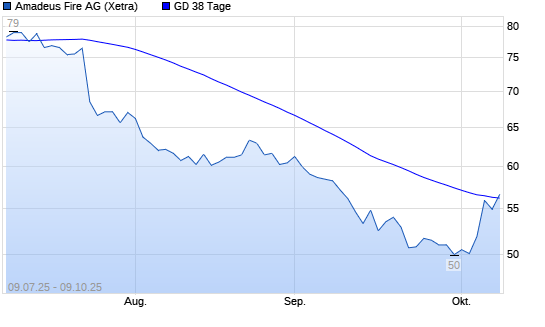 Mit dem Anstieg auf 56,90 EUR hat die Amadeus FiRe-Aktie am 08.10.2025 die 38-Tage-Linie nach oben gekreuzt.Die Amadeus FiRe-Aktie befindet sich seit dem 11.07.2025 im langfristigen Abwärtstrend ...weiterlesen