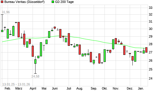 Mit dem Anstieg auf 27,60 EUR hat die Bureau Veritas-Aktie am 12.01.2026 die 200-Tage-Linie nach oben gekreuzt.Die Bureau Veritas-Aktie befand sich seit dem 07.01.2026 im langfristigen Abwärtstrend ...weiterlesen