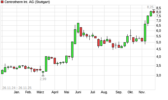 Mit dem Anstieg auf 8,40 EUR hat die CENTROTHERM PHOTOV.KONV.-Aktie (ISIN DE000A1TNMM9) am 25.11.2025 ein neues 10-Jahres-Hoch erreicht und damit den Kurs vom 24.11.2025 eingestellt.Die CENTROTHERM ...weiterlesen