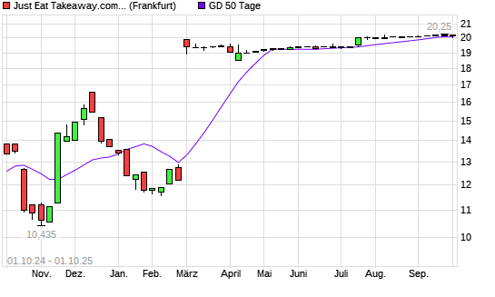 Mit dem Rücksetzer auf 20,01 EUR hat die Just Eat Takeaway.com-Aktie am 30.09.2025 die 50-Tage-Linie nach unten gekreuzt.Die Just Eat Takeaway.com-Aktie befindet sich seit dem 24.02.2025 ...weiterlesen