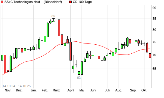 Mit dem Rücksetzer auf 70,50 EUR hat die SS&C Technologies-Aktie am 13.10.2025 die 100-Tage-Linie nach unten gekreuzt.Die SS&C Technologies-Aktie befindet sich seit dem 10.10.2025 im ...weiterlesen