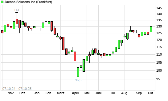 Mit dem Anstieg auf 131,00 EUR hat die Jacobs Engineering Group-Aktie (ISIN US46982L1089) am 06.10.2025 ein neues 6-Monats-Hoch erreicht und damit den Kurs vom 14.08.2025 eingestellt.Die Jacobs ...weiterlesen