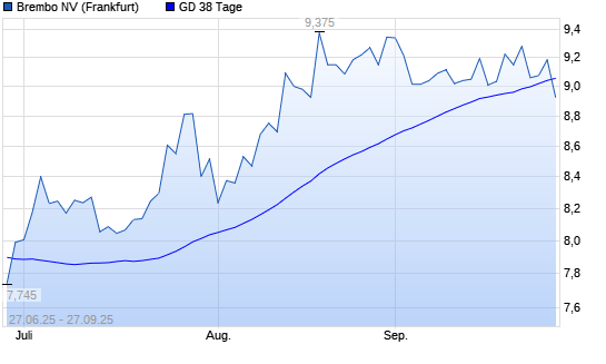 Mit dem Rücksetzer auf 8,93 EUR hat die Brembo-Aktie am 26.09.2025 die 38-Tage-Linie nach unten gekreuzt.Die Brembo-Aktie befindet sich seit dem 08.08.2025 im langfristigen Aufwärtstrend ...weiterlesen