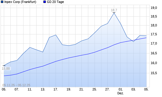 Mit dem Anstieg auf 17,44 EUR hat die Inpex-Aktie am 04.12.2025 die 20-Tage-Linie nach oben gekreuzt.Die Inpex-Aktie befindet sich seit dem 09.07.2025 im langfristigen Aufwärtstrend und hat ...weiterlesen