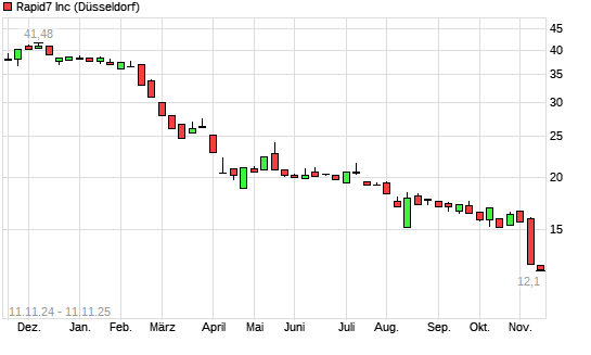 Mit dem Rücksetzer auf 12,11 EUR hat die Rapid7-Aktie (ISIN US7534221046) am 10.11.2025 ein neues 5-Jahres-Tief erreicht und damit den Kurs vom 07.11.2025 eingestellt.Die Rapid7-Aktie befindet ...weiterlesen