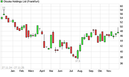 Mit dem Anstieg auf 49,40 EUR hat die Otsuka Holdings-Aktie (ISIN JP3188220002) am 26.11.2025 ein neues 6-Monats-Hoch erreicht und damit den Kurs vom 16.09.2025 eingestellt.Die Otsuka Holdings-Aktie ...weiterlesen