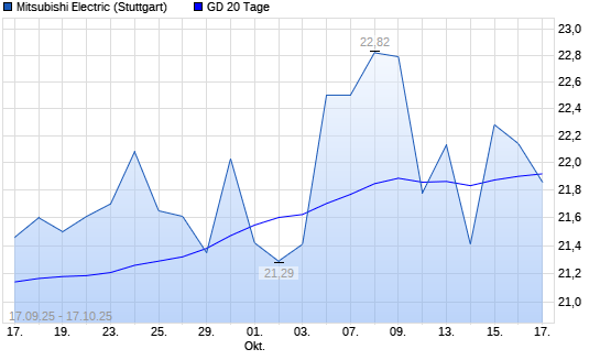Mit dem Rücksetzer auf 21,85 EUR hat die Mitsubishi Electric-Aktie am 16.10.2025 die 20-Tage-Linie nach unten gekreuzt.Die Mitsubishi Electric-Aktie befindet sich seit dem 23.04.2025 im ...weiterlesen