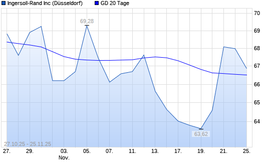 Mit dem Anstieg auf 67,20 EUR hat die Ingersoll-Rand-Aktie am 24.11.2025 die 20-Tage-Linie nach oben gekreuzt.Die Ingersoll-Rand-Aktie befindet sich seit dem 14.02.2025 im langfristigen Abwärtstrend ...weiterlesen