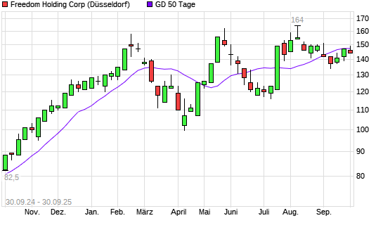 Mit dem Rücksetzer auf 147,00 EUR hat die Freedom Holding-Aktie am 29.09.2025 die 50-Tage-Linie nach unten gekreuzt.Die Freedom Holding-Aktie befindet sich seit dem 10.07.2025 im langfristigen ...weiterlesen