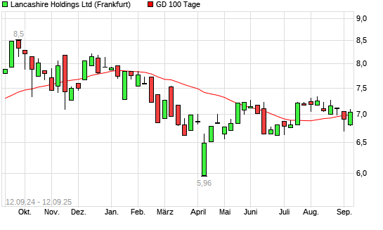 Mit dem Anstieg auf 6,96 EUR hat die Lancashire Holdings-Aktie am 11.09.2025 die 100-Tage-Linie nach oben gekreuzt.Die Lancashire Holdings-Aktie befindet sich seit dem 22.08.2025 im langfristigen ...weiterlesen