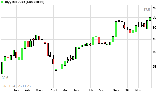 Mit dem Anstieg auf 55,50 EUR hat die JOYY-Aktie (ISIN US46591M1099) am 25.11.2025 ein neues 3-Jahres-Hoch erreicht und damit den Kurs vom 21.11.2025 eingestellt.Die JOYY-Aktie befindet sich ...weiterlesen