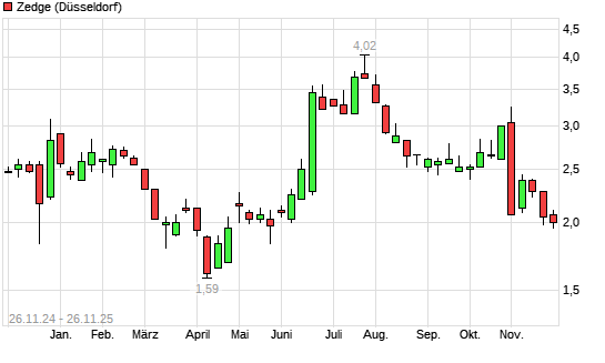 Mit dem Rücksetzer auf 1,94 EUR hat die Zedge-Aktie (ISIN US98923T1043) am 25.11.2025 ein neues 6-Monats-Tief erreicht und damit den Kurs vom 21.11.2025 eingestellt.Die Zedge-Aktie befindet ...weiterlesen