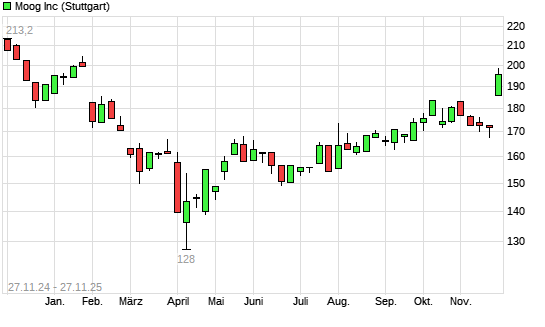 Mit dem Anstieg auf 196,50 EUR hat die Moog-Aktie (ISIN US6153942023) am 26.11.2025 ein neues 6-Monats-Hoch erreicht und damit den Kurs vom 25.11.2025 eingestellt.Die Moog-Aktie befindet sich ...weiterlesen