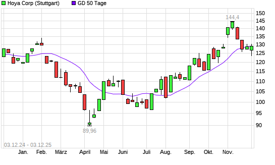 Mit dem Anstieg auf 129,85 EUR hat die Hoya-Aktie am 02.12.2025 die 50-Tage-Linie nach oben gekreuzt.Die Hoya-Aktie befindet sich seit dem 03.09.2025 im langfristigen Aufwärtstrend und hat in ...weiterlesen