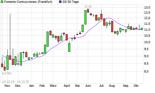 Mit dem Anstieg auf 11,14 EUR hat die Fomento Construcciones-Aktie am 13.10.2025 die 50-Tage-Linie nach oben gekreuzt.Die Fomento Construcciones-Aktie befindet sich seit dem 05.05.2025 im langfristigen ...weiterlesen