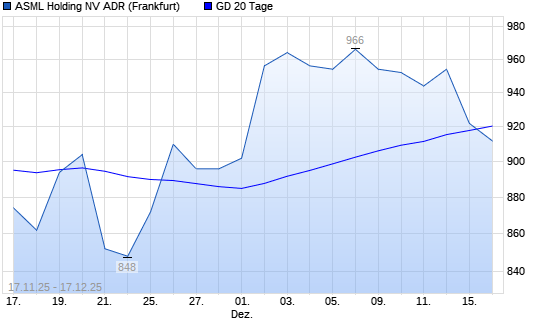 Mit dem Rücksetzer auf 912,00 EUR hat die ASML-Aktie am 16.12.2025 die 20-Tage-Linie nach unten gekreuzt.Die ASML-Aktie befindet sich seit dem 08.09.2025 im langfristigen Aufwärtstrend ...weiterlesen