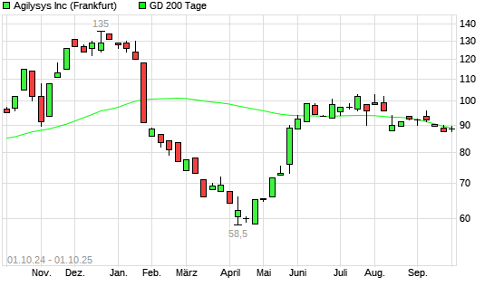 Mit dem Rücksetzer auf 87,50 EUR hat die Agilysys-Aktie am 30.09.2025 die 200-Tage-Linie nach unten gekreuzt.Die Agilysys-Aktie befand sich seit dem 29.09.2025 im langfristigen Aufwärtstrend ...weiterlesen