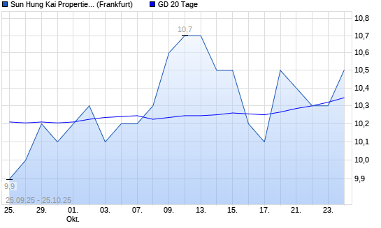 Mit dem Anstieg auf 10,50 EUR hat die Sun Hung Kai Properties-Aktie am 24.10.2025 die 20-Tage-Linie nach oben gekreuzt.Die Sun Hung Kai Properties-Aktie befindet sich seit dem 09.05.2025 im ...weiterlesen