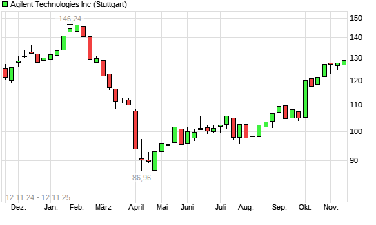 Mit dem Anstieg auf 129,12 EUR hat die Agilent Technologies-Aktie (ISIN US00846U1016) am 11.11.2025 ein neues 6-Monats-Hoch erreicht und damit den Kurs vom 06.11.2025 eingestellt.Die Agilent ...weiterlesen