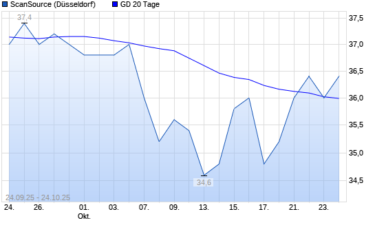 Mit dem Rücksetzer auf 36,20 EUR hat die ScanSource-Aktie am 23.10.2025 die 20-Tage-Linie nach unten gekreuzt.Die ScanSource-Aktie befindet sich seit dem 20.10.2025 im langfristigen Aufwärtstrend ...weiterlesen